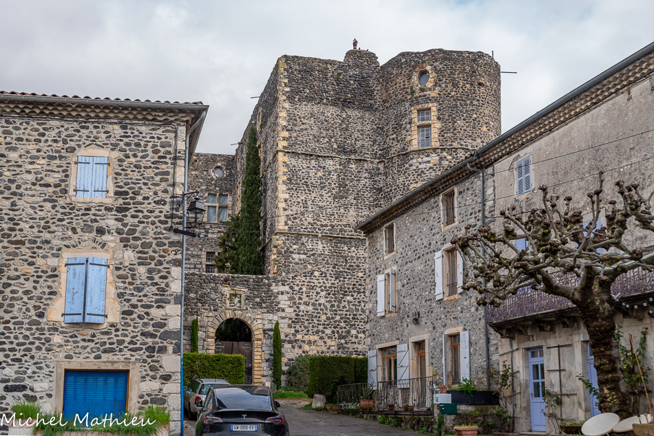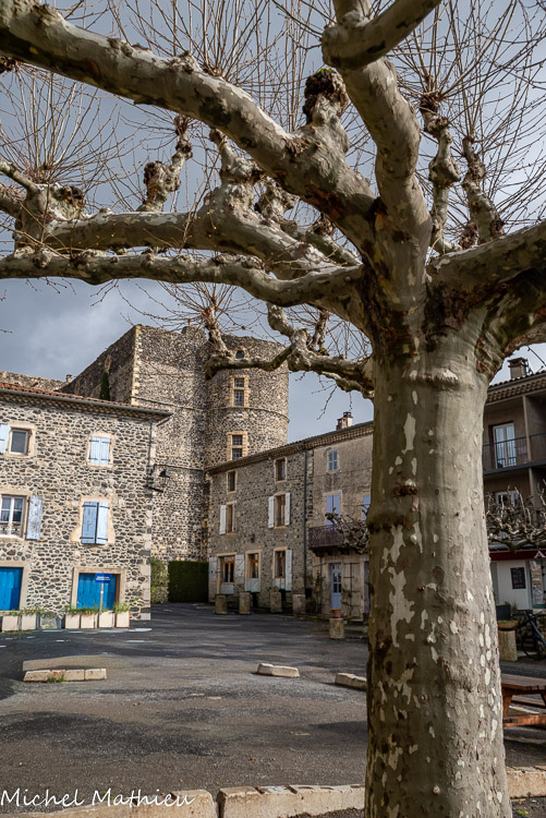 Place du château. Jusqu’au XIIIe siècle le territoire d’Aps est la propriété de l’évêque. Au milieu du XIIIe siècle c’est la famille des Deux Chiens qui devient propriétaire.