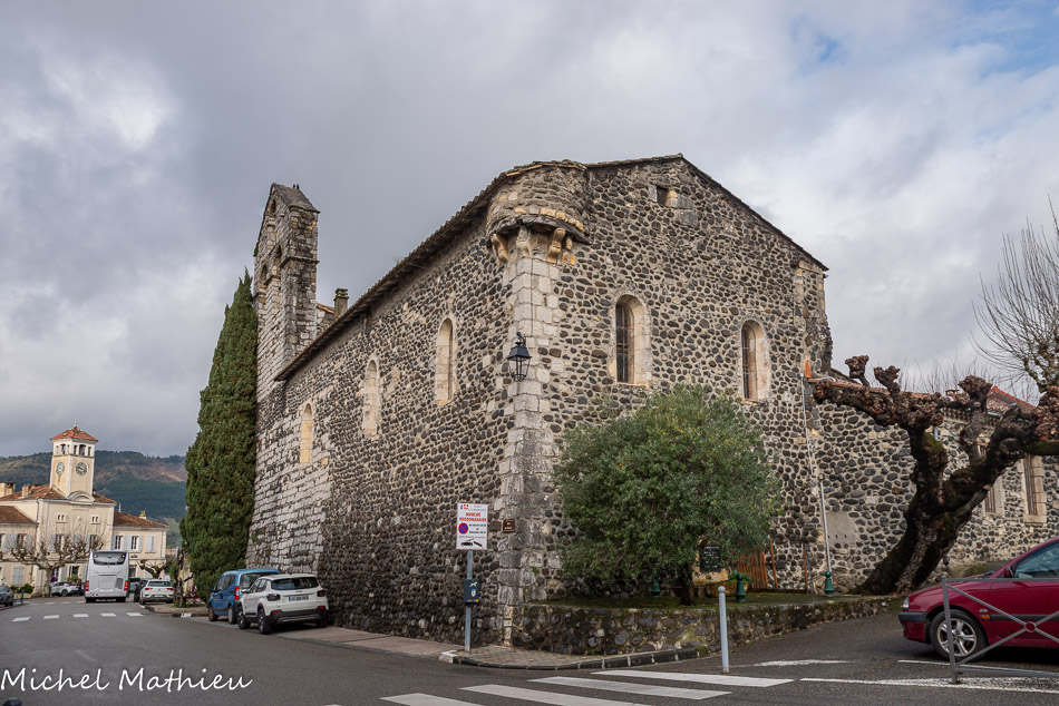 Eglise saint André. Sa particularité c’est qu’elle est adossée au mur d’enceinte taluté des fortifications du XVe siècle, qui était renforcé à l’angle sud-est d’un élément de défense : une échauguette dont on voit encore la base.