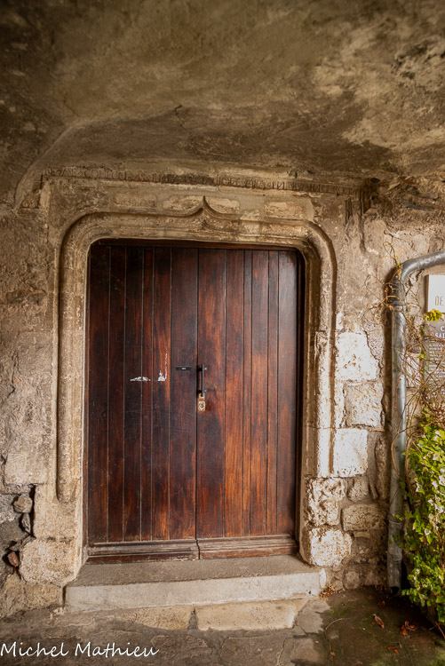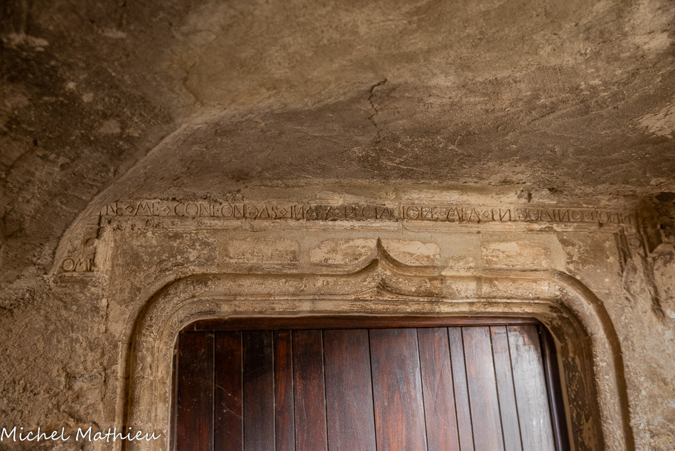 Sur la porte, datée du XVe siècle, figure, gravé sous son larmier un passage d’un psaume : « 'Seigneur- ne me trouble pas dans mon attente, je mets ma confiance dans le Seigneur ».