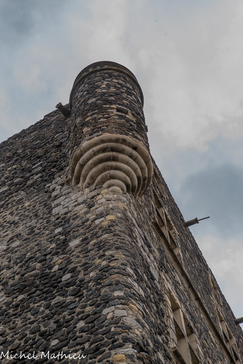 Rue du Four avec la face nord du château avec l'échauguette, en arrière plan.