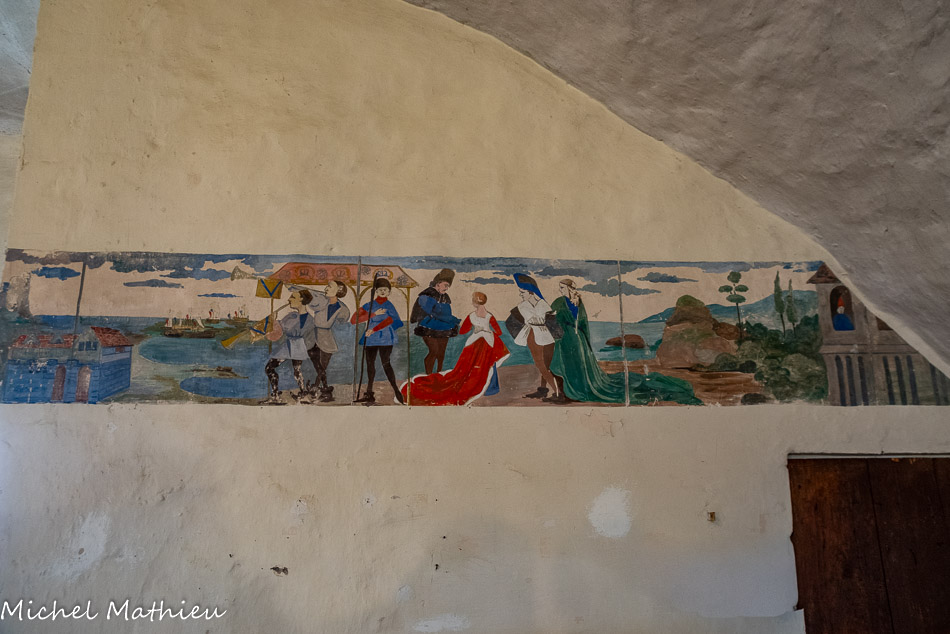 La chapelle latérale. Un tableau, de facture naïve, représente saint Vincent, patron des navigateurs et des vignerons. Le saint, portant ses attributs (paime du martyr et un bateau), se détache sur fond de paysage, avec à l’arrière plan le cap Saint Vincent au Portugal et Lisbonne. Il s’agit probablement d’une peinture du début XIXe siècle.