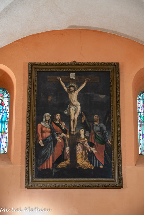Dans le chœur, une Crucifixion, avec la Vierge, saint Jean, Marie-Madeleine et saint André. La présence inhabituelle de ce dernier, patron de l'église, permet de supposer que le tableau a été exécuté pour l’église d’Alba. Ses caractères stylistiques le rattachent au XVIIe mais son auteur n’a pu être identifié. Cette œuvre a été classée monument historique et restaurée en 1953.