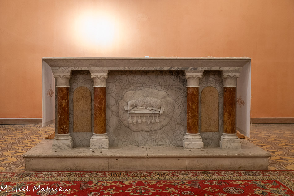 L'autel avec l'agneau couché sur la croix et le livre aux sept sceaux.