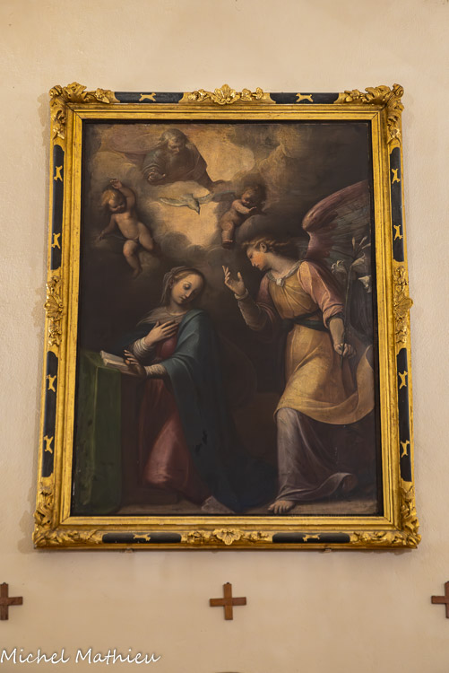 Contre le mur gauche de la nef, une très belle Annonciation, du début du XVIIe, classée monument historique, restaurée en 1953. Une esquisse préparatoire de l’Ange, conservée au musée de Varsovie, a permis l’attribution certaine de cette œuvre au peintre piémontais G.CACCIA, dit II Moncalvo (1568 – vers l625).