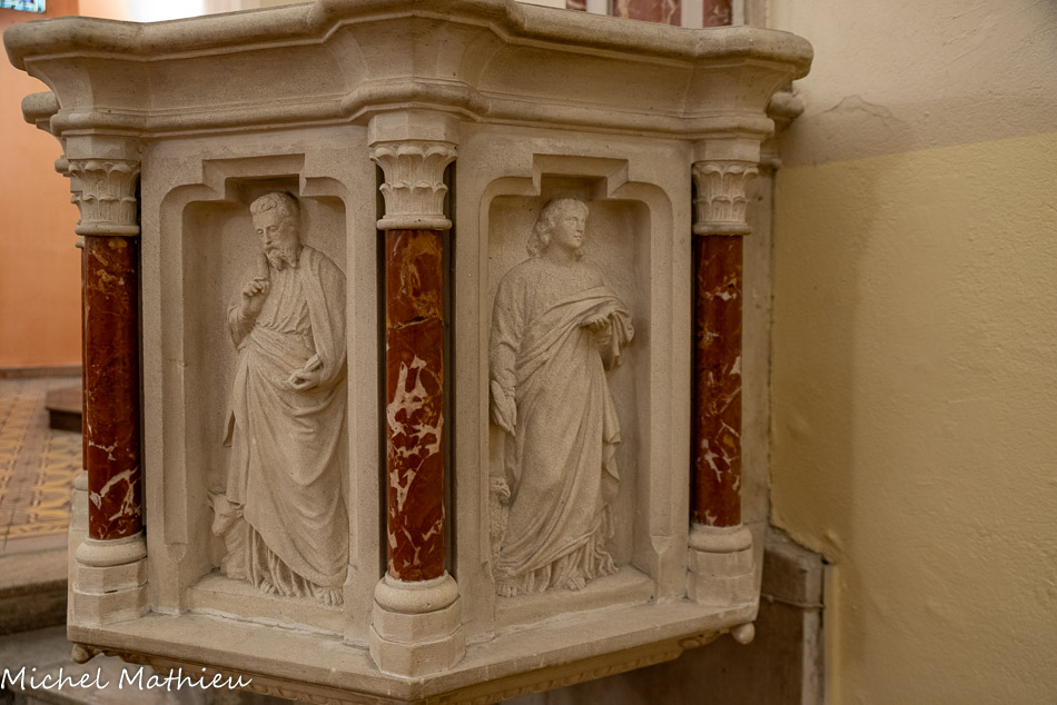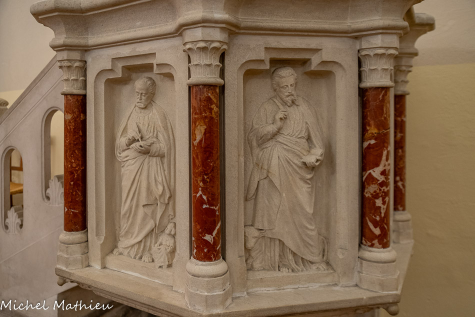 Sur la chaire, installée début XX° sont sculptés les quatre évangélistes.