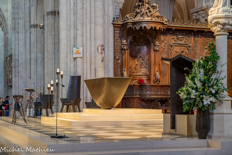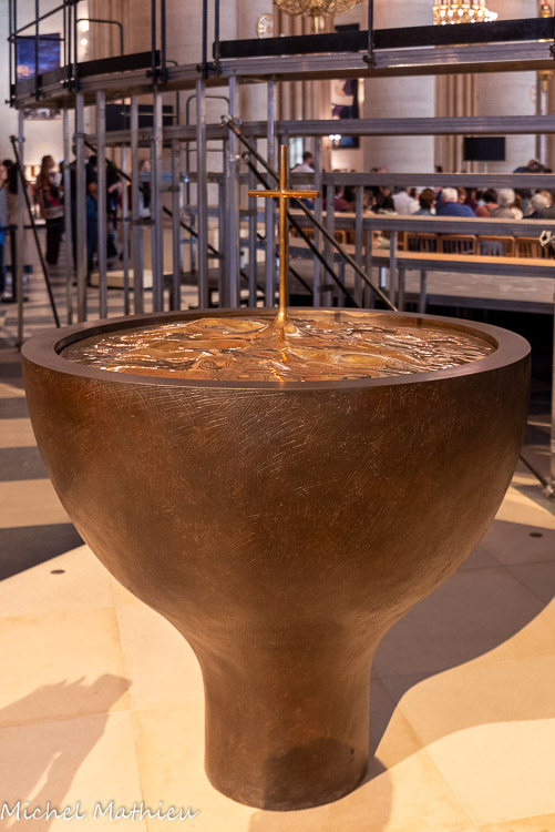 Le nouveau baptistère conçu par le sculpteur Guillaume Bardet.