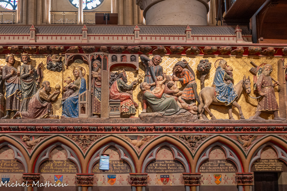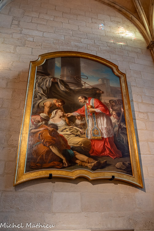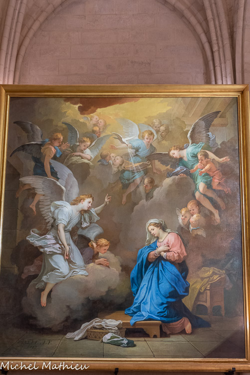 Issu d'une série de huit tableaux illustrant des scènes de la vie de la Vierge, commandée à plusieurs peintres en 1711 pour orner le chœur.