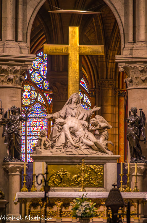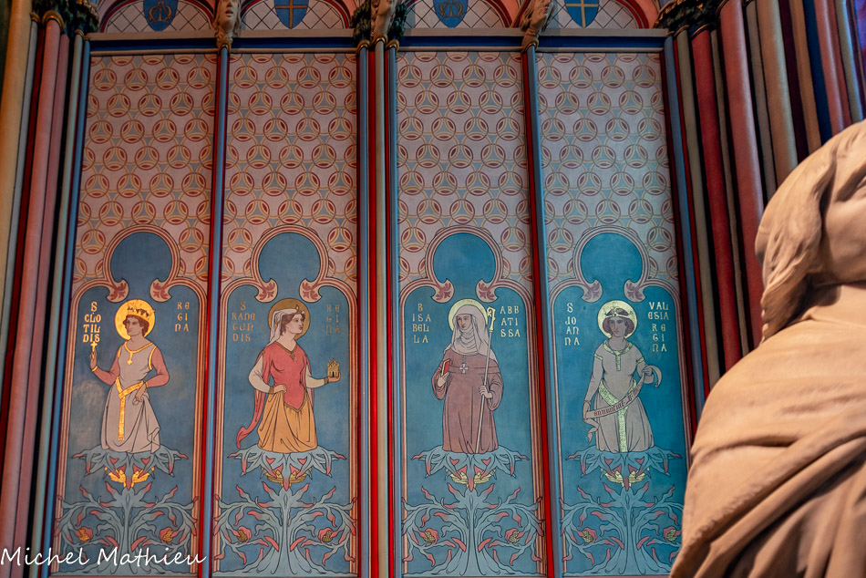 A droite, Saint Jean-Baptiste, Saint-Etienne, Sainte Geneviève et le Pape Saint Sylvestre. Saint Denis et Sainte Geneviève sont avec Saint Marcel les saints patrons de Paris.