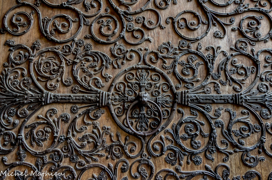 Porte en bois aux ferrures de fer forgé du XIIIe siècle.