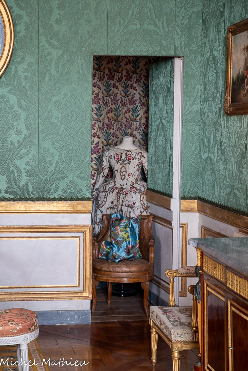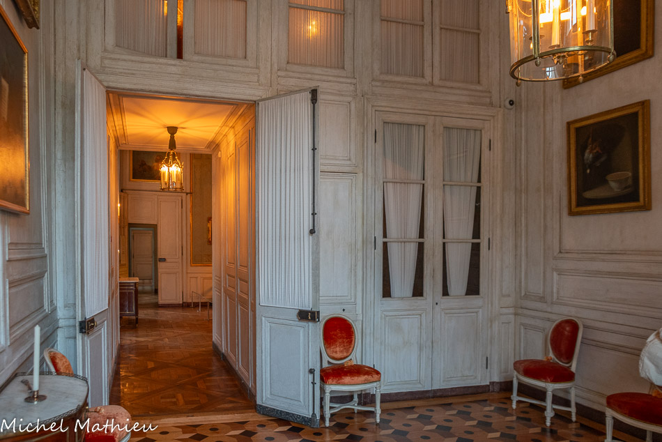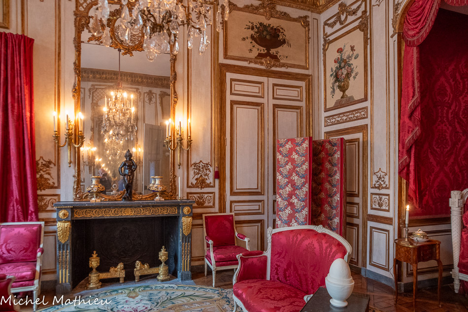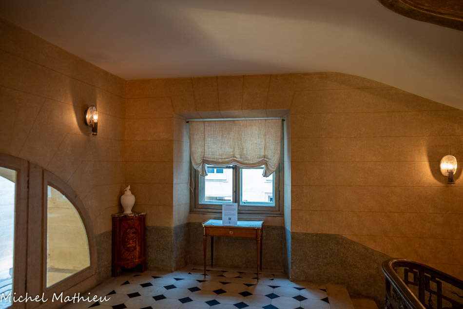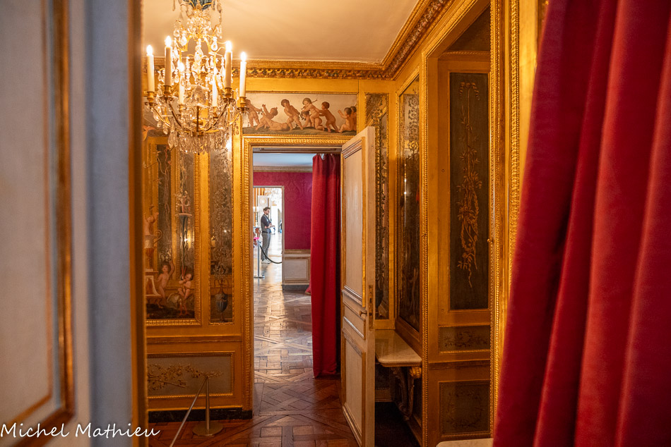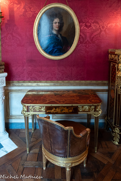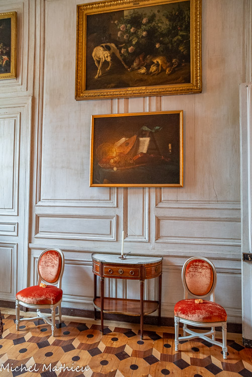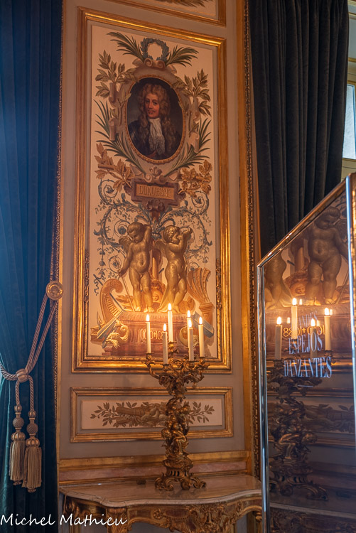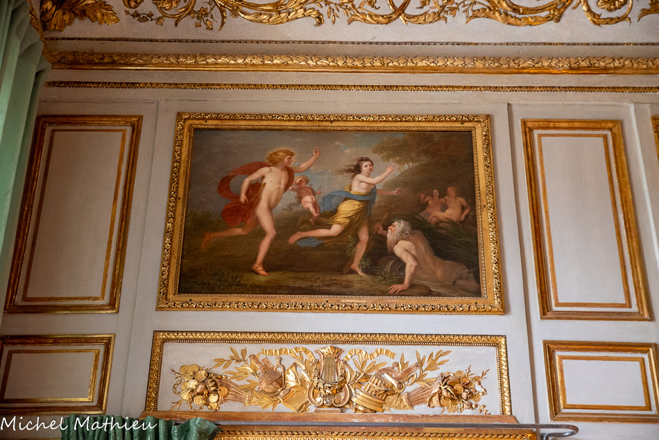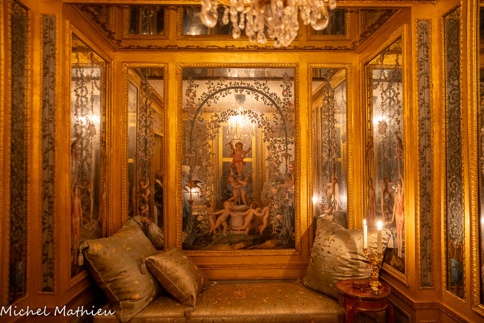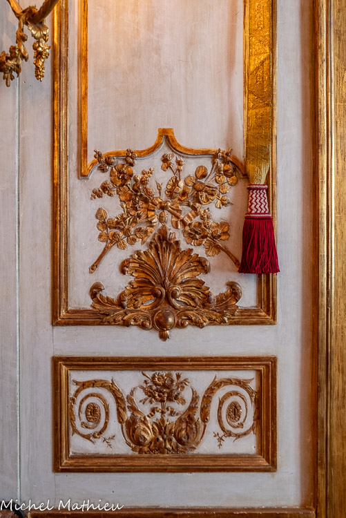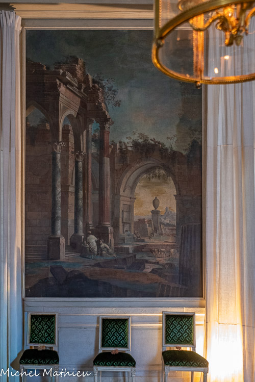 Tableau : Saint François stigmatisé. 1650-1674. Dans un cadre en bois sculpté (palmettes, rangs de perles) et doré de format rectangulaire vertical, saint François est représenté dans un encadrement cintré au sommet, couché et le bras droit appuyé sur le sol, levant la main gauche et la tête en direction du ciel, vers deux chérubins apparaissant dans les nuées. Sur le sol est posé un crâne. Derrière lui, les troncs de deux arbres se croisent, subtile allusion à la croix." title="" />