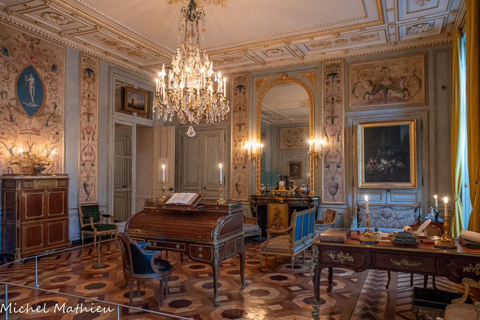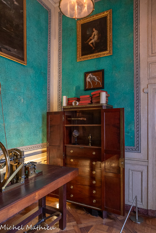 Cette pendule fait partie des deux premières pendules en forme de lyre créées à la manufacture royale de Sèvres en 1785. La porcelaine est à fond beau bleu, une couleur mise au point vers 1763, et la forme de la lyre était connue dans d'autres matériaux depuis 1770. Le 4 janvier 1786, Louis XVI achète deux lyres « beau bleu » pour 192 livres chacune. Celle-ci reçut sans doute peu après un mécanisme dû à l’atelier de Courieult et un cadran décoré antérieurement par Coteau qui l’a signé et daté de 1785. Elle ornait probablement la chambre à coucher de Napoléon Ier au palais des Tuileries." title="" />