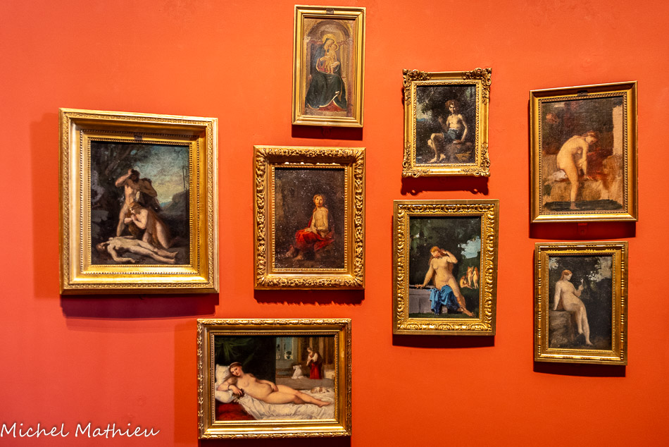Au milieu : Au milieu : Tête de profil Vers 1900 Huile sur bois ; Le Lévite d’Ephraïm et sa femme morte Entre1895 et 1898 Huile sur carton ; Femme drapée assise Vers 1881 Huile sur bois ; Mademoiselle Dodey? Vers 1893 Huile sur carton ; Femme nue couchée dans une fourrure Vers 1892 Huile sur bois ; Tête de femme de Entre 1892 et 1900 Huile sur carton ; Judith
