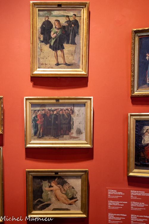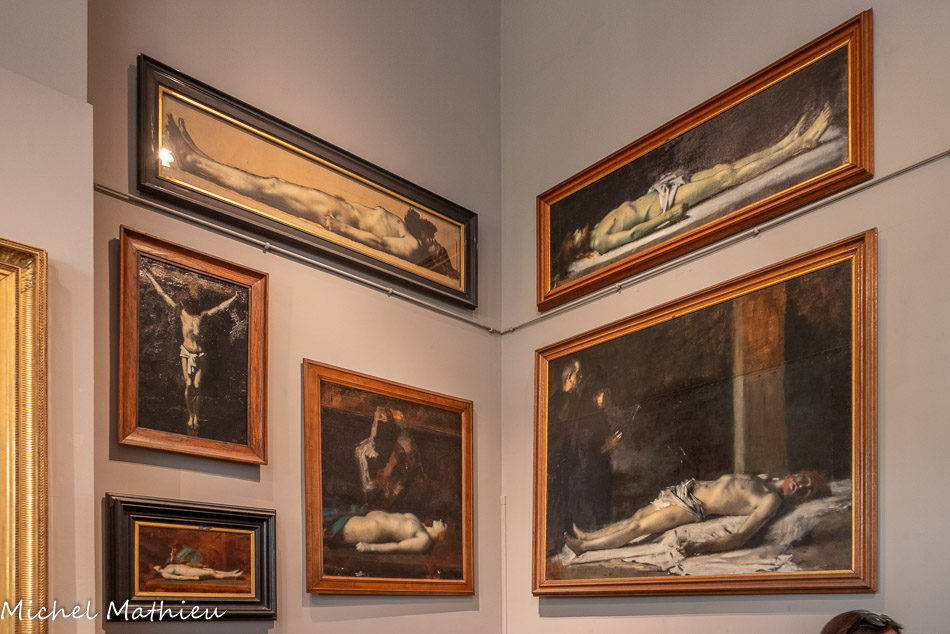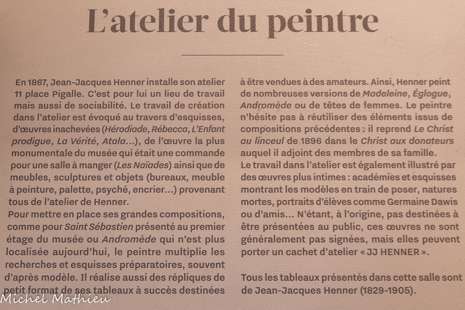 Martyre 1892 Huile sur bois ; Jeune fille tenant un livre Vers 1888 Huile et fusain sur papier marouflé sur toile ; Mademoiselle Dodey 1893 Huile sur toile ; Salomé Dite à tort Hérodiade Vers 1887 Huile et fusain sur papier marouflé sur toile ; Rêve Vers 1900 Huile sur bois ; Madeleine en prière 1889 Huile sur carton ; Jules Henner Christ mort et les Saintes Femmes. Sainte Femme penchée. Tête de femme Entre 1872 et 1876 Huile sur toile ; Thérèse Bianchi Vers 1889 Huile et fusain sur papier marouflé sur toile ; Nature morte à la poire Entre 1890 et 1905 Huile sur bois ; Nature morte à la pomme jaune Entre 1880 et 1905 Huile sur papier marouflé sut bois (couvercle de boite à cigares ; Madeleine pénitente Vers 1860 Huile sur toile ; Liseuse Vers 1886 Huile sur bois ; Madeleine Vers1885 Huile sur bois.